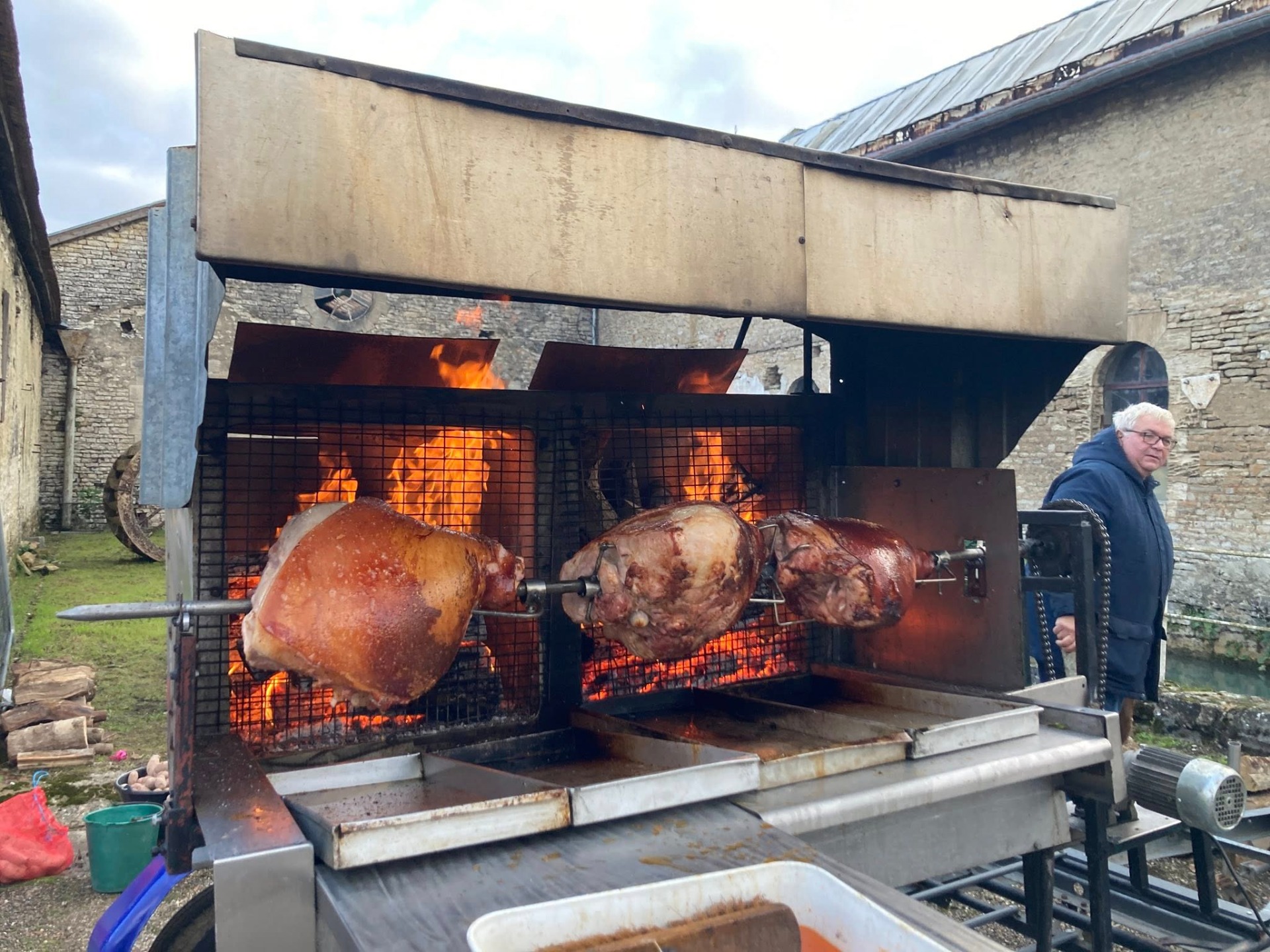 Le déjeuner, présenté comme un simple « pique-nique », s'est avéré être plus exactement un repas champêtre, régal collectif, sous un grand chapiteau abritant plusieurs dizaines de convives, dont les élèves du lycée Henri Loritz de Nancy. Préparé par les membres de l'association, le repas a débuté par un apéritif-maison accompagné de cakes salés, suivi d'un assortiment de salades. Le plat principal, élaboré au feu de bois, associait pommes de terre en robe des champs et jambons grillés. Fromages et une profusion de desserts faits maison — tartes, crumbles et gâteaux aux fruits de saison — ont clôturé ce moment convivial et chaleureux.